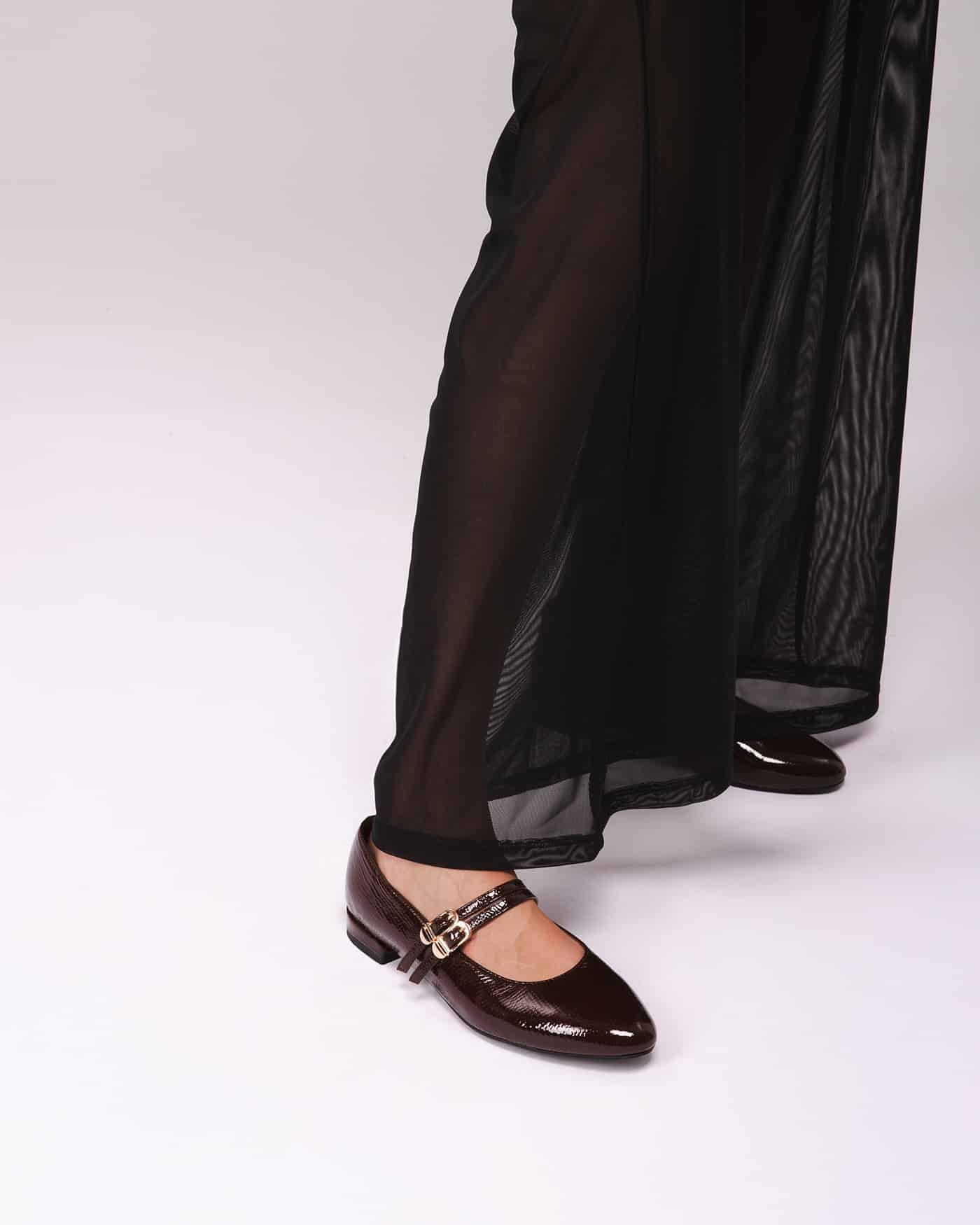Pour un look automnal tout en douceur, associez vos babies vernis chocolat Kiji à une jupe plissée camel ou une robe midi imprimée dans les tons chauds. Vous pouvez aussi les porter avec un pantalon 7/8e beige ou kaki, et un pull col cheminée pour un effet chic et confortable. Leur finition brillante permet de rehausser une tenue sobre sans effort. N’hésitez pas à jouer sur les accessoires dorés pour rappeler les détails des brides. Enfin, pour entretenir l’éclat du cuir vernis, nettoyez-les avec un chiffon doux après chaque utilisation.