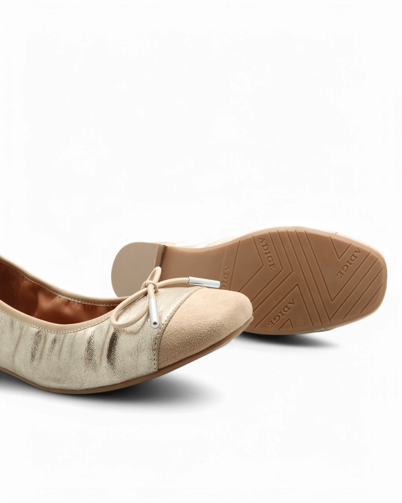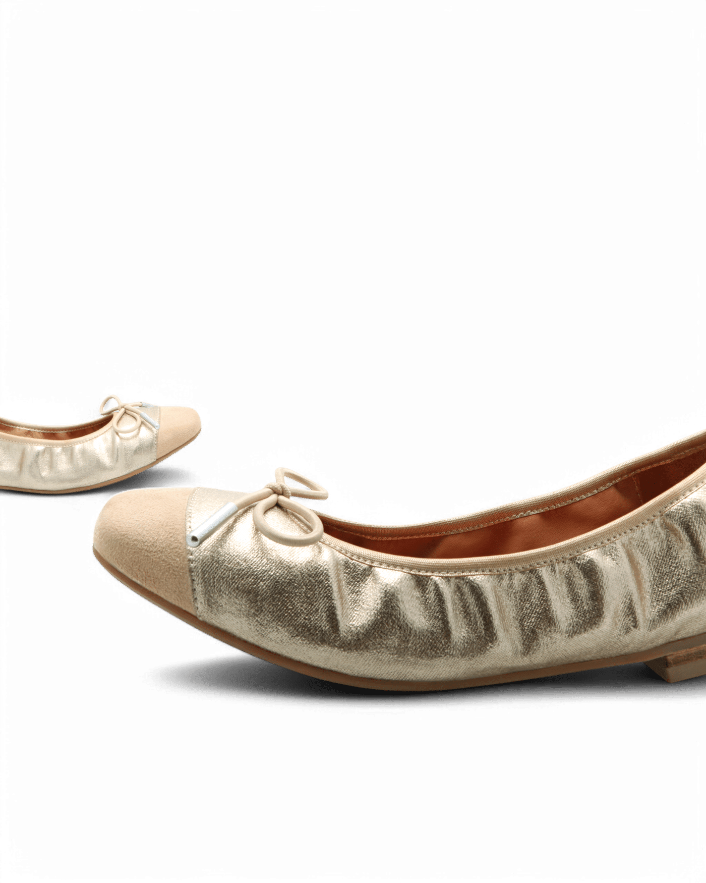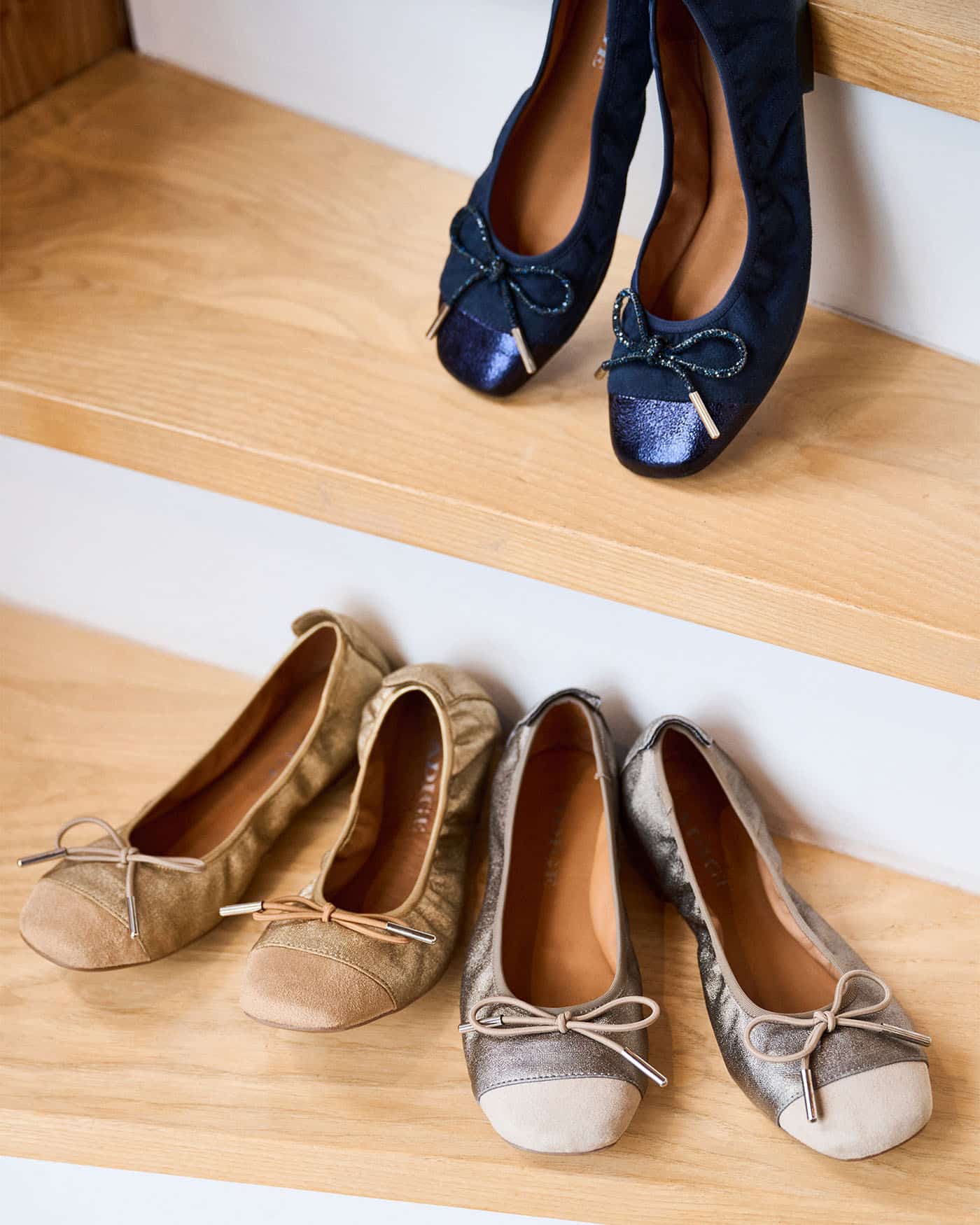 La teinte dorée, ni trop flashy ni trop discrète, est par ailleurs juste ce qu’il faut pour apporter une touche de lumière et de sophistication à votre look. Ce choix de couleur permet une grande polyvalence. Elle s’associe aussi bien à des vêtements neutres qu’à des tenues plus colorées, pour un effet stylé et raffiné. Avec leur petite touche de beige sur la pointe du pied, elles offrent originalité et raffinement. Un autre élément apporte une grande distinction à cette paire de ballerines : le nœud doré placé délicatement sur le dessus du pied. Simple et discret, il permet de mettre en valeur la féminité et l’élégance de la ballerine.