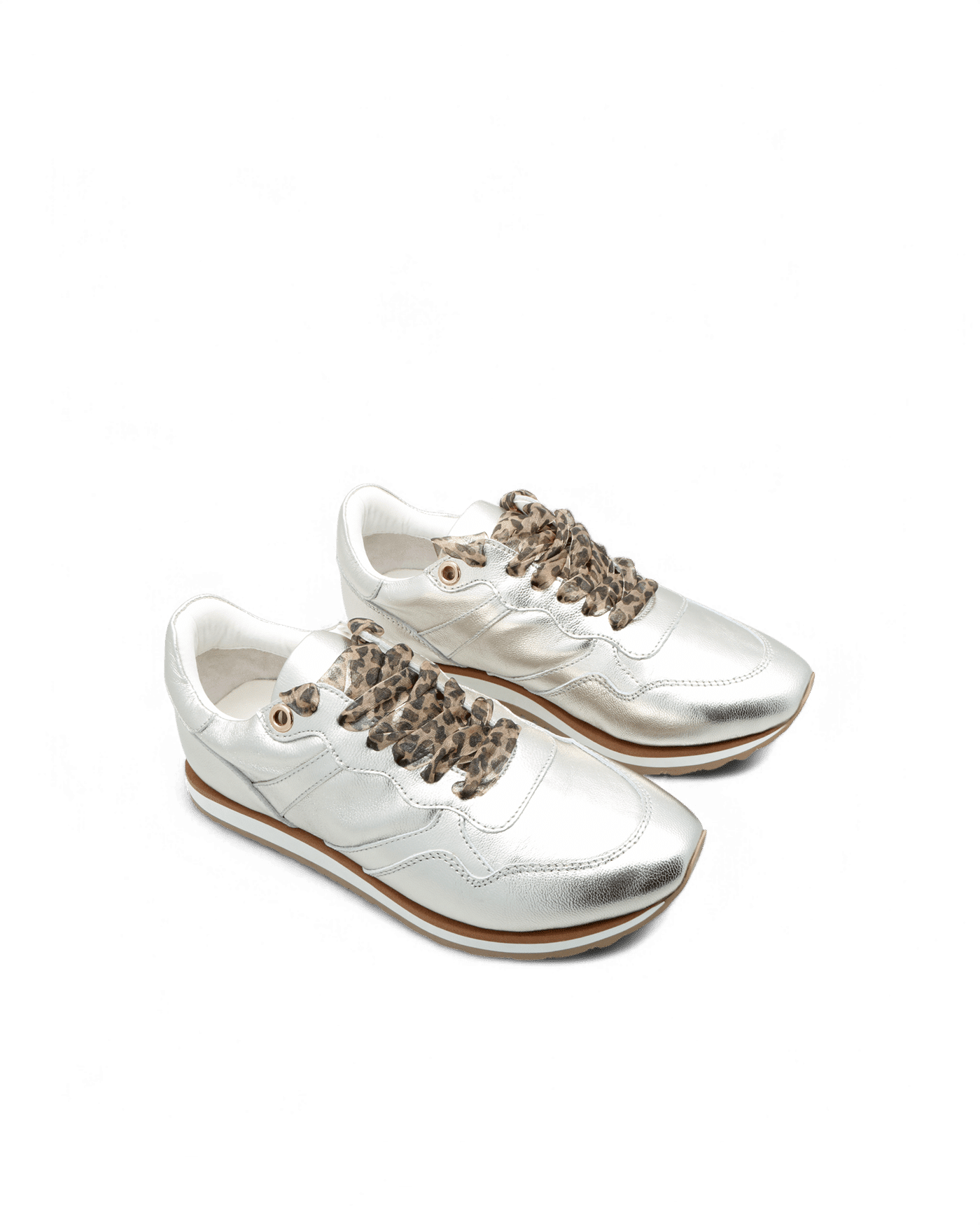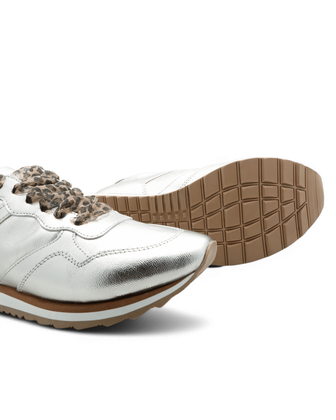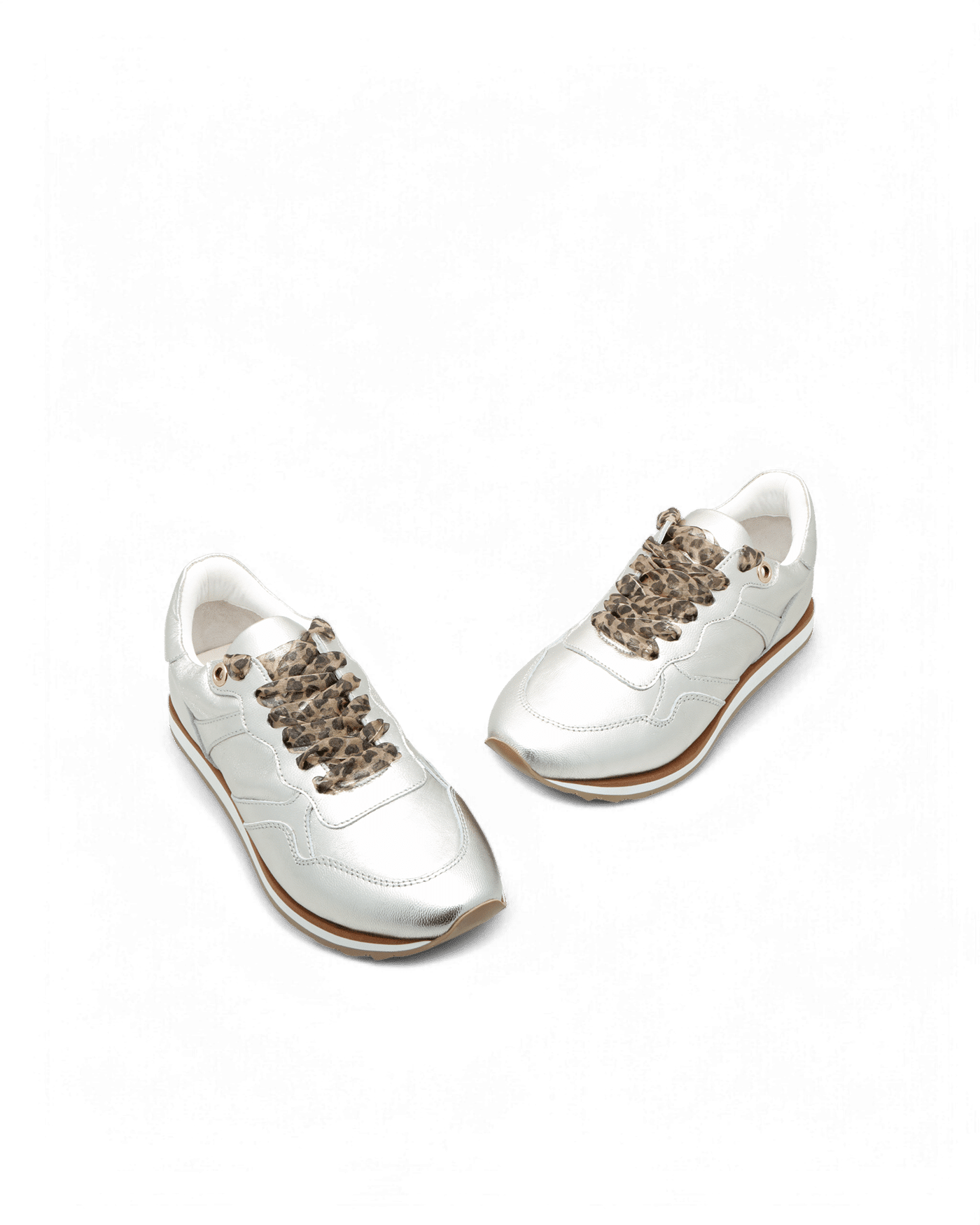 Laissez-vous séduire par notre nouveau modèle de basket femme argentée Zazie, une paire de chaussures qu’il ne faut pas laisser passer. Ces sneakers se distinguent tout d’abord par leur finition métallisée et leur lacets léopard ajoutant une touche de modernité et de raffinement. Cette paire de baskets s’adapte à de nombreux styles vestimentaires, que ce soit avec une tenue décontractée ou pour apporter une touche originale à une tenue plus sophistiquée. Leur design minimaliste les rend faciles à associer avec une multitude de couleurs.