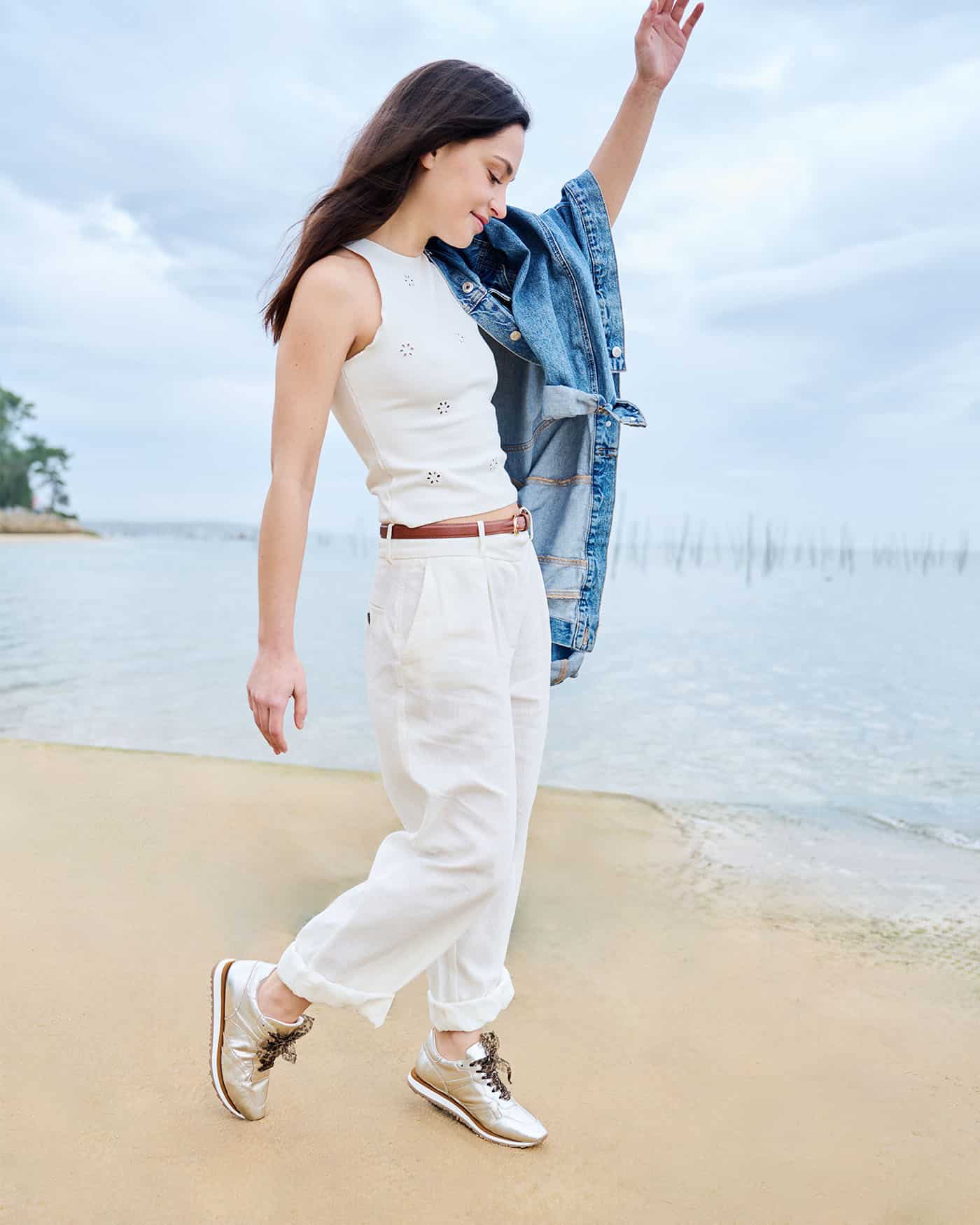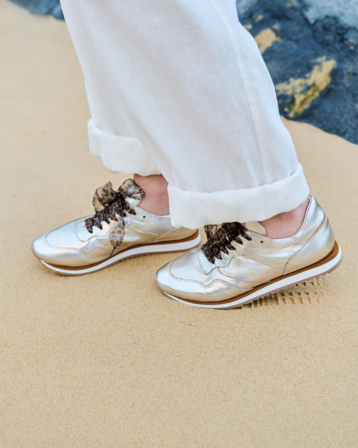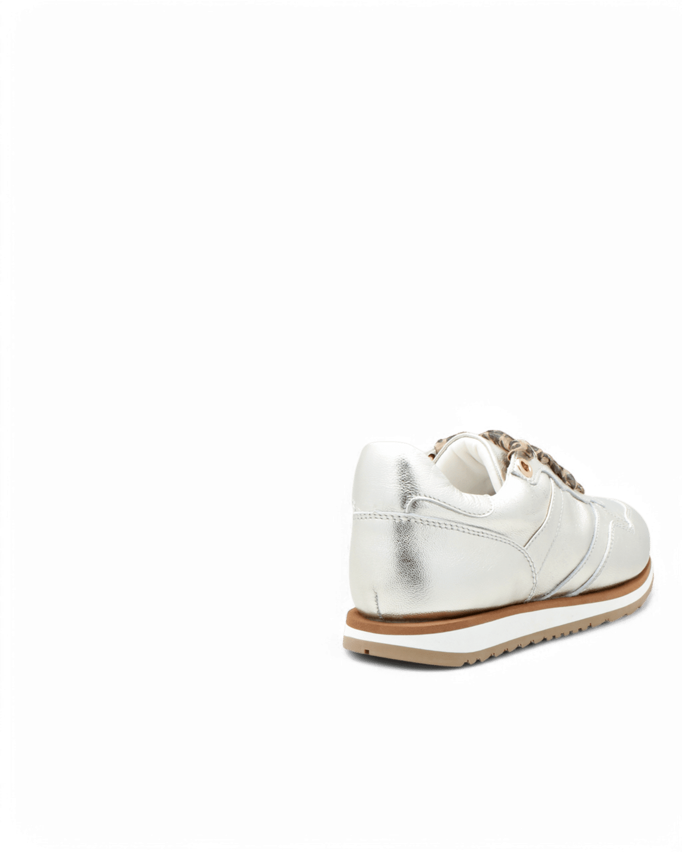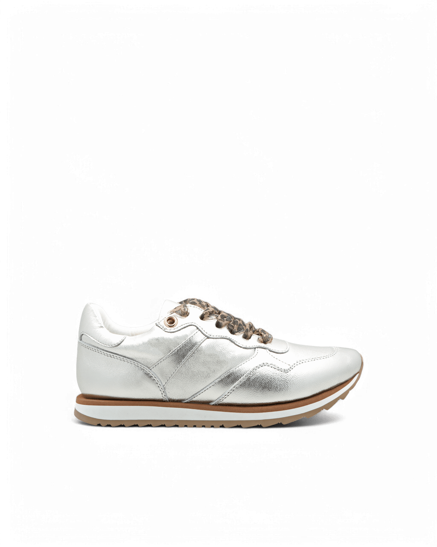 Laissez-vous séduire par notre nouveau modèle de basket femme argentée Zazie, une paire de chaussures qu’il ne faut pas laisser passer. Ces sneakers se distinguent tout d’abord par leur finition métallisée et leur lacets léopard ajoutant une touche de modernité et de raffinement. Cette paire de baskets s’adapte à de nombreux styles vestimentaires, que ce soit avec une tenue décontractée ou pour apporter une touche originale à une tenue plus sophistiquée. Leur design minimaliste les rend faciles à associer avec une multitude de couleurs.