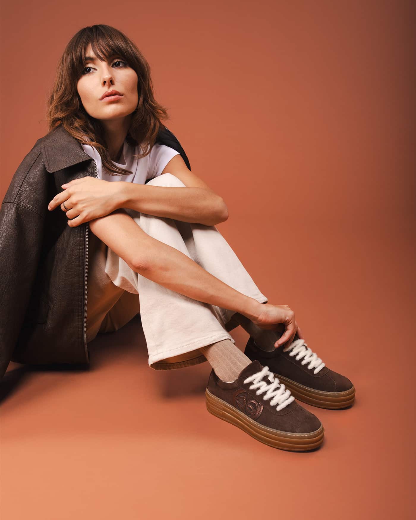 La basket Quati se porte avec de nombreuses tenues. Associez-la à un pantalon fluide beige ou écru pour une allure douce et urbaine. Elle accompagne aussi très bien un tailleur décontracté ou une robe pull, pour un style à la fois chic et confortable. Sa teinte chocolat, profonde et chaude, se marie avec les tons camel, kaki, crème ou bordeaux. Une sneaker parfaite pour varier les looks sans perdre en élégance.