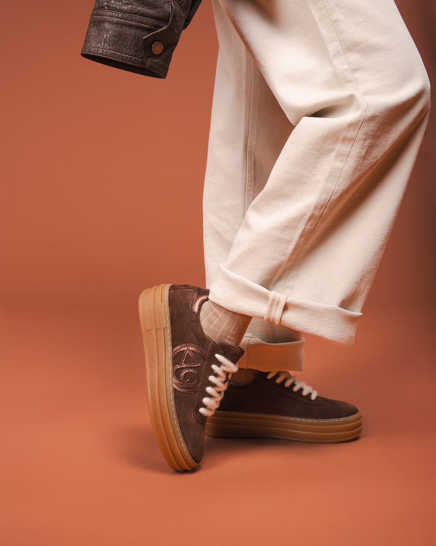 Affichez un style audacieux et élégant avec la basket marron chocolat Quati. Ce modèle emblématique signé Adige séduit par son design moderne et son allure dynamique. Sa tige en daim chocolat profond, à la fois douce et chaleureuse, s’accorde parfaitement avec vos tenues automne-hiver, du jean brut au pantalon tailleur.
