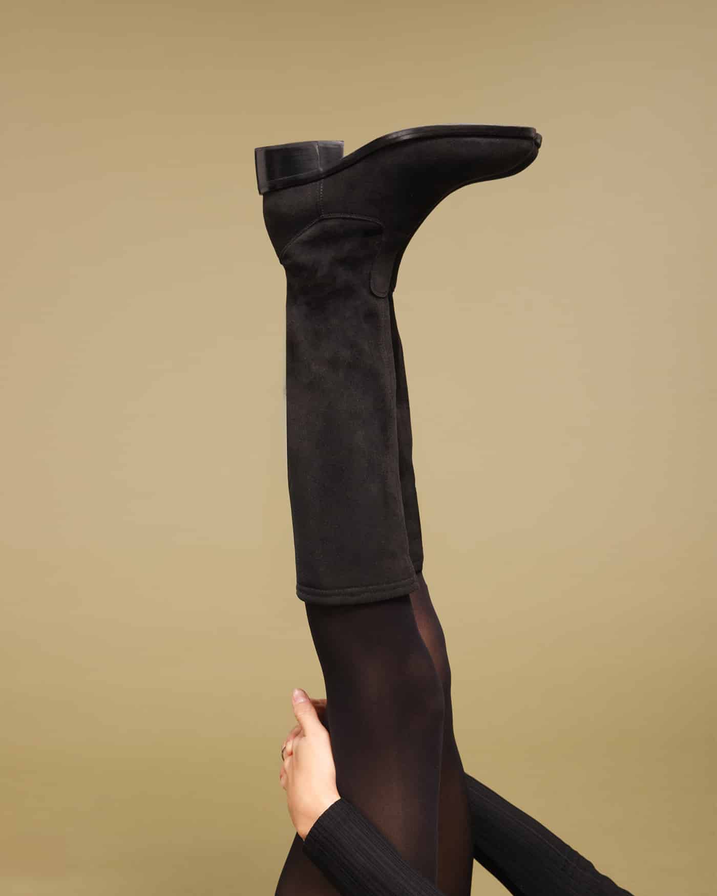 Confectionnée dans une toile stretch noire de qualité, cette botte plate épouse parfaitement la jambe, sans jamais comprimer. Ainsi, elle assure une silhouette fluide et féminine tout en garantissant un excellent confort. Par ailleurs, sa texture douce et mate apporte une touche chaleureuse à vos tenues, parfaite pour la saison. De plus, sa fermeture zippée discrète placée à l’arrière facilite l’enfilage au quotidien, tout en préservant l’esthétique du modèle.