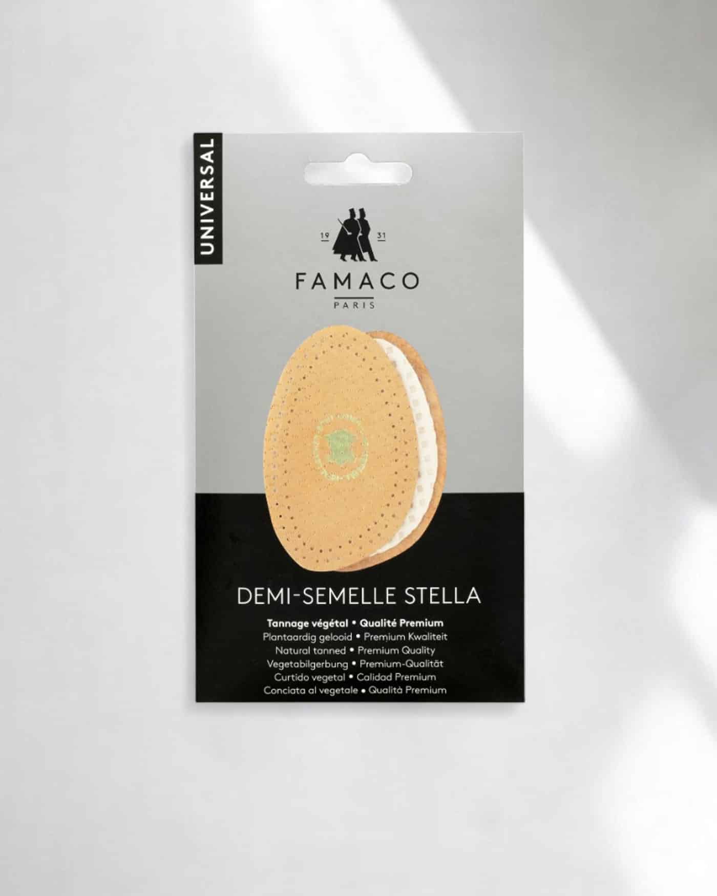 Les demi semelles Stella sont fabriquées en France, dans le respect du savoir-faire de Famaco. Elles prolongent la durée de vie de vos chaussures tout en apportant un meilleur maintien au quotidien.