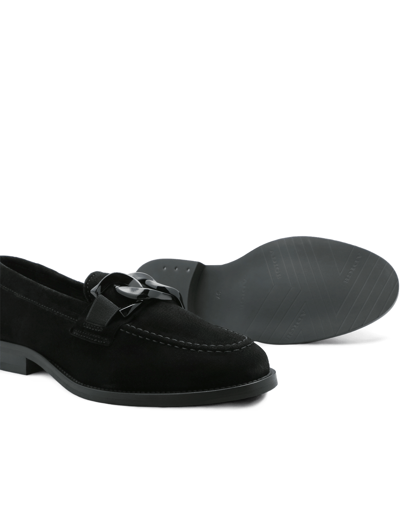 Ce mocassin daim femme, avec son coloris noir, sera facile à assortir avec vos tenues, tout en sobriété et élégance. Nos mocassins Evian sont le choix idéal pour une tenue habillée professionnelle ou un look festif, tout en profitant du confort de la semelle plate.