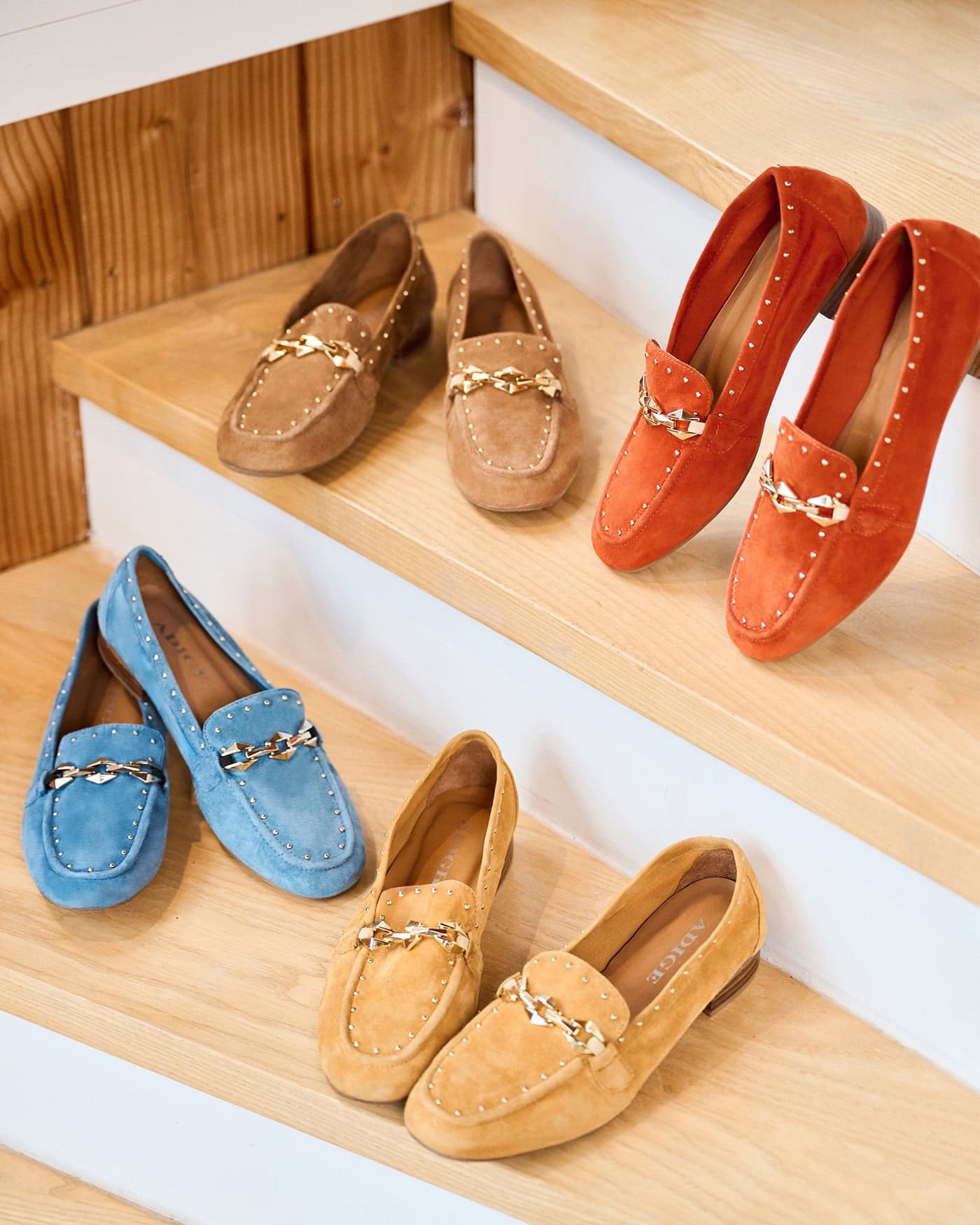Découvrez également les mocassins Kama dans ses autres coloris : daim havane, daim bleu et daim jaune safran.