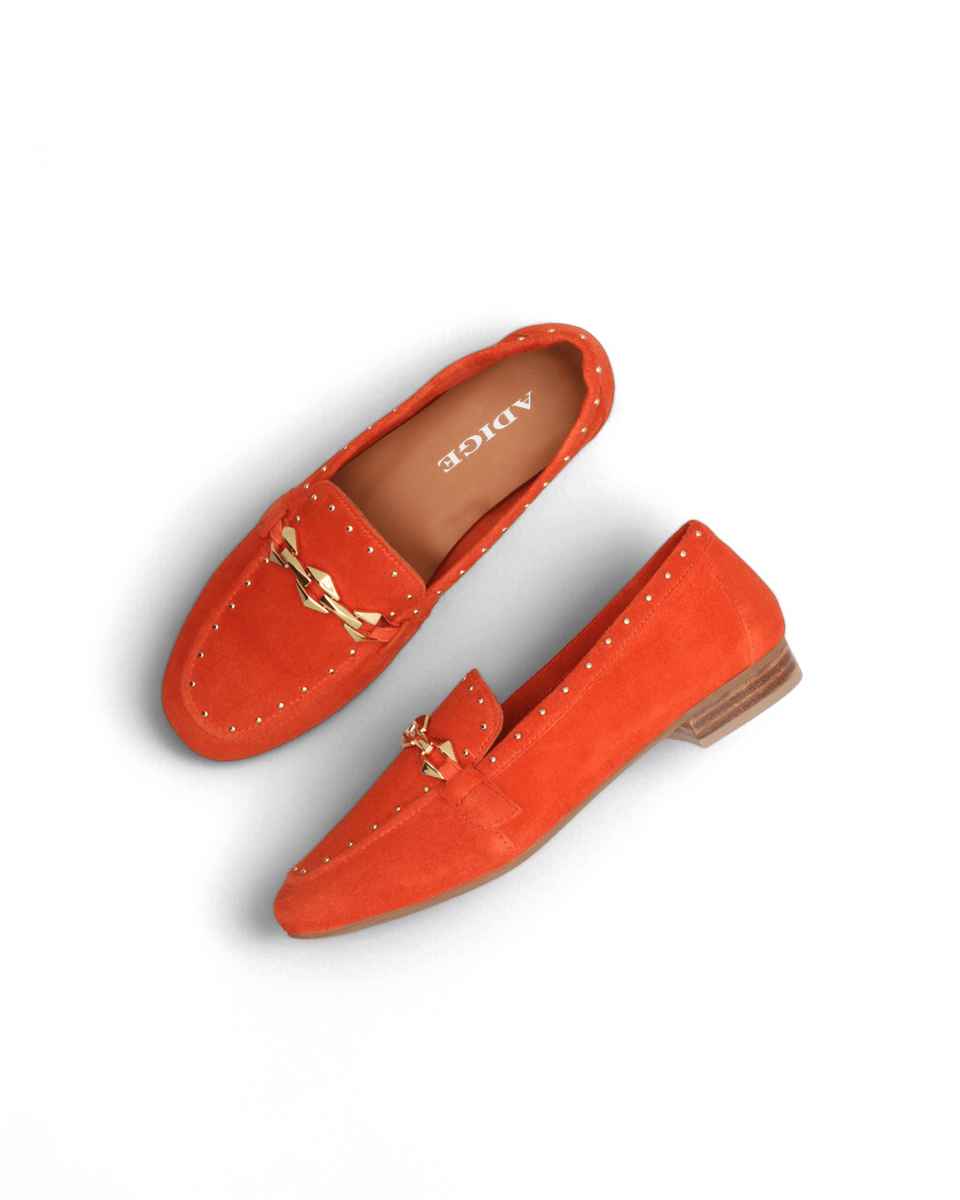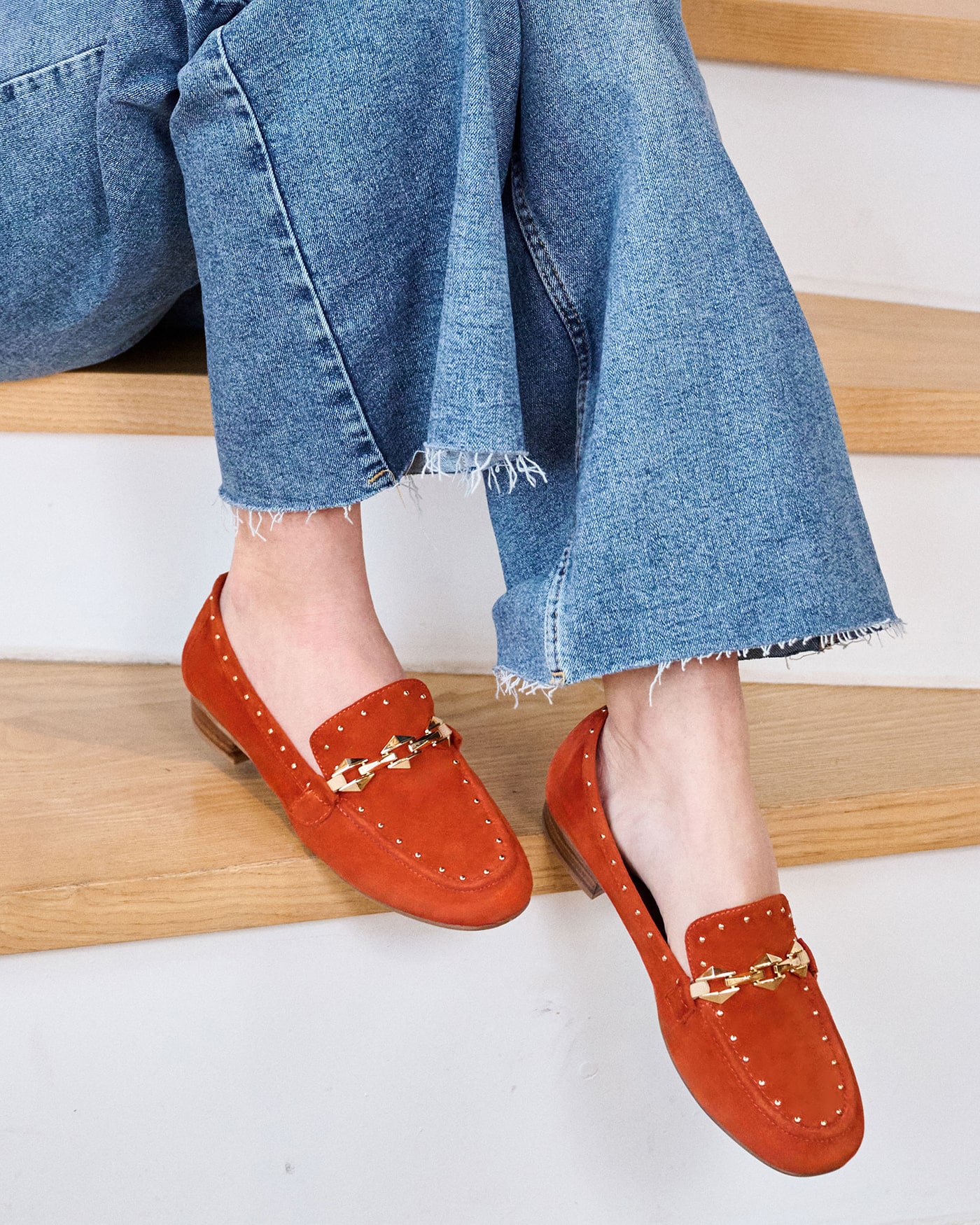Tout d’abord, que ce soit pour un look de bureau, une sortie décontractée ou une soirée spéciale, ces mocassins s’adaptent parfaitement à toutes les occasions. En effet, les mocassins en daim Kama sont un parfait mélange de chic et de modernité. Le daim de qualité supérieure, doux et luxueux au toucher, crée une texture subtile qui capte la lumière et met en valeur la profondeur de sa couleur orangée. Cette teinte vive et audacieuse ajoute une touche de fraîcheur et de sophistication à votre look. Elle reste pour autant assez polyvalente pour s’associer à une multitude de couleurs et de styles. Portez-les avec un jean décontracté et une chemise en lin pour un look quotidien. Vous pouvez également les combiner avec une robe élégante ou une jupe midi pour un ensemble plus sophistiqué. Par ailleurs, ses petits détails tels que les clous dorés ainsi que la jolie chaînette sur le dessus du pied ajoutent une touche de raffinement supplémentaire.