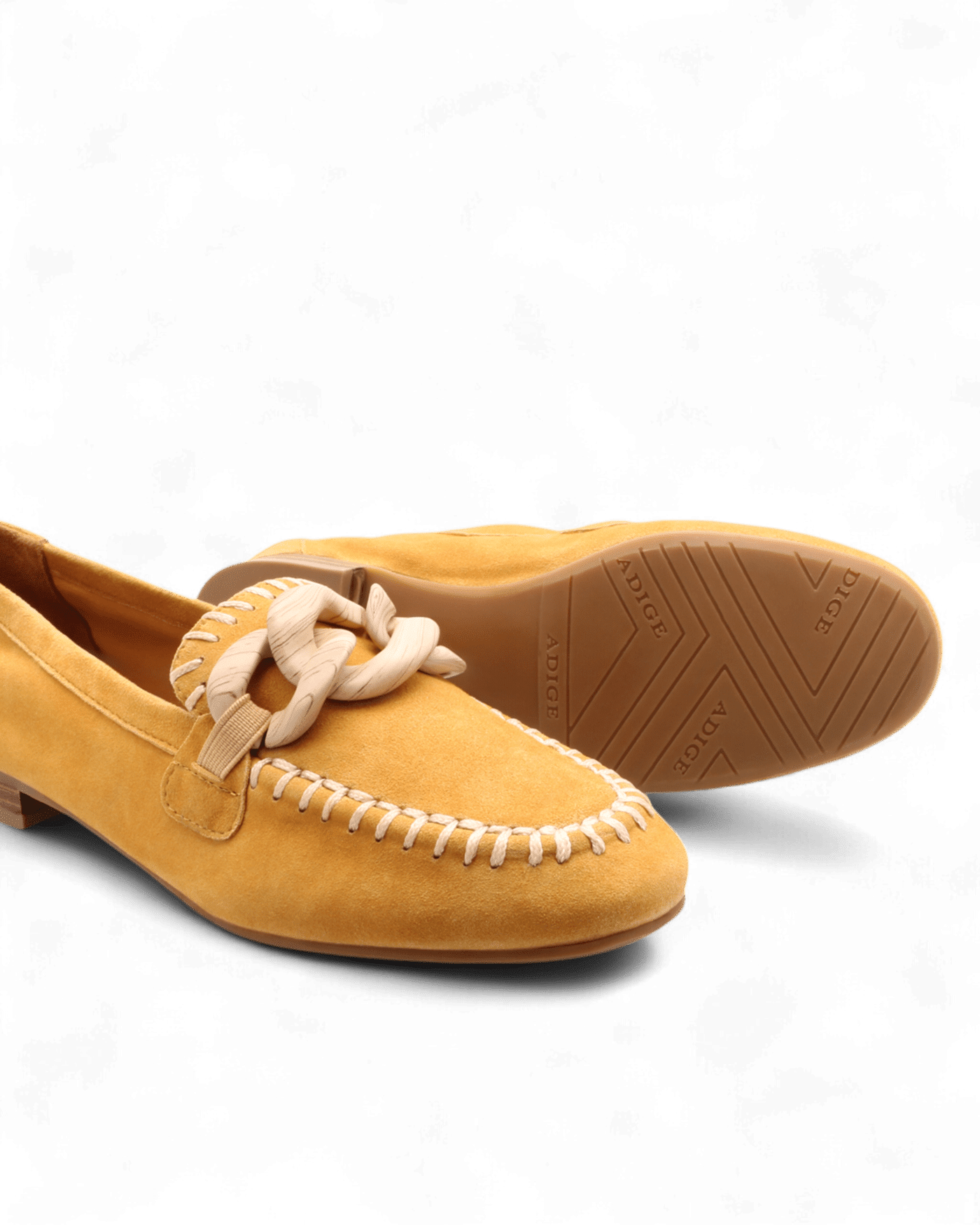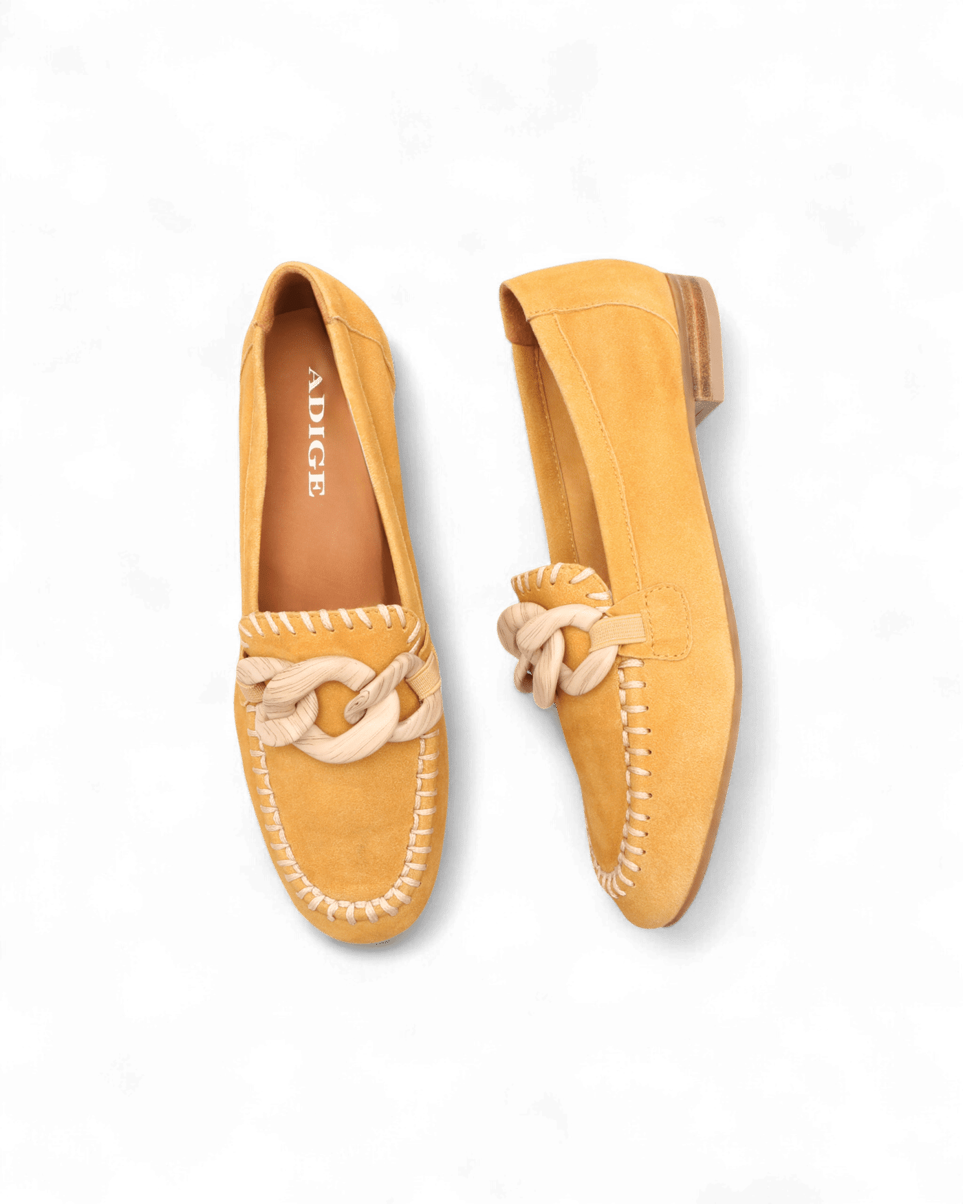 Illuminez votre garde-robe estivale avec les mocassins daim femme jaune Lenny. À la fois audacieux et élégant, ce modèle incarne tout le savoir-faire d’Adige, maison reconnue pour ses chaussures haut de gamme destinées aux femmes exigeantes.