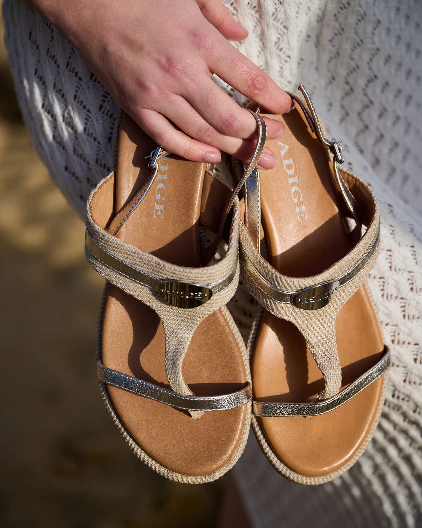 Ces sandales plates disposent d’une jolie boucle argentée ainsi que d’une plaque floquée « Adige » sur le dessus du pied. La boucle réglable garantit un ajustement précis et une tenue irréprochable, tandis que la semelle intérieure en cuir s’adapte à la forme de votre pied. Elle vous garantit un confort inégalé pour toutes vos activités. Sa semelle extérieure et son petit talon en gomme de 1,5 cm garantissent quant à eux une marche agréable, même après plusieurs heures de marche. Le design à bout ouvert donne une sensation de légèreté, idéal pour les journées chaudes d’été, tout en mettant en valeur la forme de votre pied.